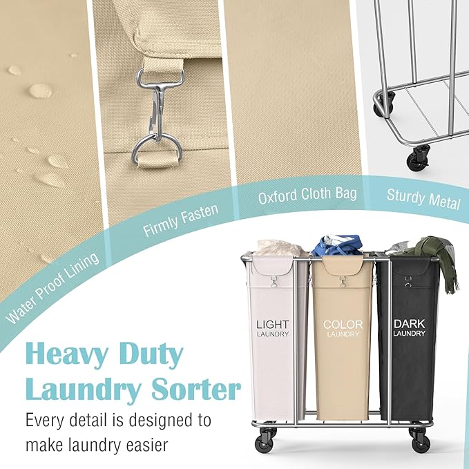 - 【Commercial & Home Use】: This 3 bag laundry sorter is versatile for commercial and home use, including hotels, inns, laundry rooms, dorms and everyday household needs, Its sturdy heavy-duty structure ensures optimal performance in various settings.