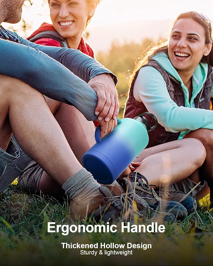 - 48 Hrs Cold & 24 Hrs Hot: Trebo insulated water bottle with handle features double-walled vacuum insulation with a copper lining, keeping beverages cold for 48 hours and hot for 24 hours. Say goodbye to lukewarm drinks and hello to refreshing sips, even in the hottest summer.