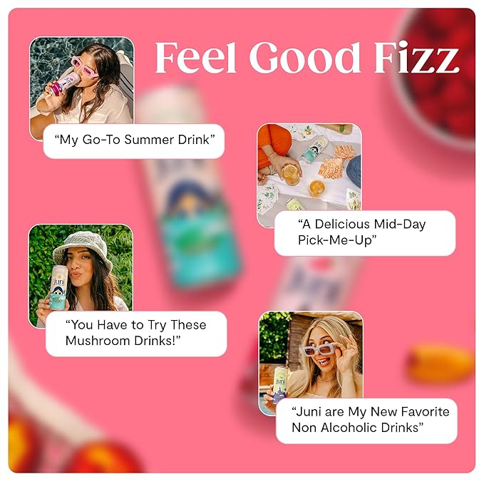 - Adaptogenic Super-Blend: Dive into a bubbly fusion of reishi mushroom, lion’s mane, acerola cherry, and green tea. Juni is an invigorating drink crafted to renew your energy, calm your mind, and support overall well-being
