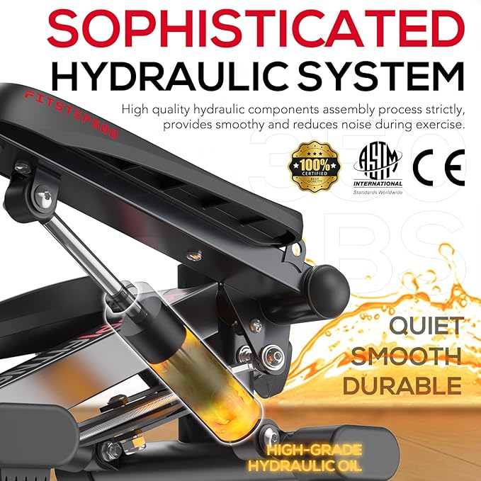 - Powerful Hydraulic System - The European standard hydraulic system which was experienced durability test provides the outstanding durability to this stair steppers for exercise at home, great cushioning to protect your joint, let you enjoy your fitness in a quiet atmosphere.