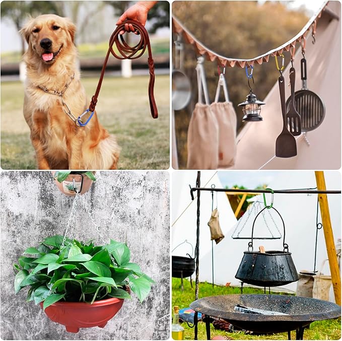 - Multipurpose Use: Mini carabiner can be easily attached to backpack, snap clips, hooks, chains, keychains, water bottles, camping gear, cookware, lanterns, planters, dog leash, rope, hiking accessories, etc. Suitable for camping, hiking, traveling, fishing etc