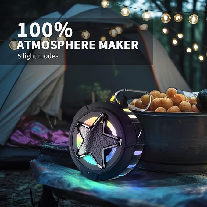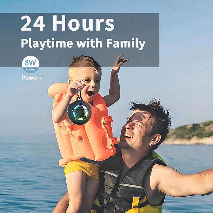 EBODA Bluetooth Shower Speaker, IP67 Waterproof Portable Speakers, Floating, TF Card, Small Outdoor Speaker with LED Light, True Wireless Stereo for Bike, Beach, Paddle Board, Kayak, Gifts
