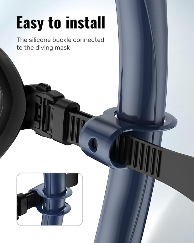 • 【Silicone Snorkel Keeper】The holder is different from others. WSTOO's holder is made of soft silicone material and is made of two connected circles. When connecting the breathing tube to the dive mask, only one side needs to be removed. Very easy to operate.