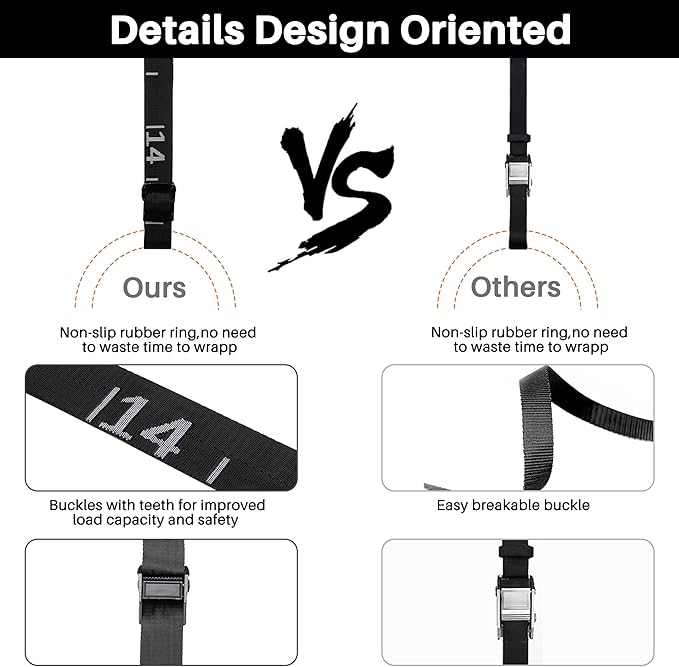 - ADJUSTABLE LENGTH: 15 ft straps are printed with Arabic numerals for hassle-free strap length adjustment. It can be adjusted to the same height freely and long enough to hang in a higher place.