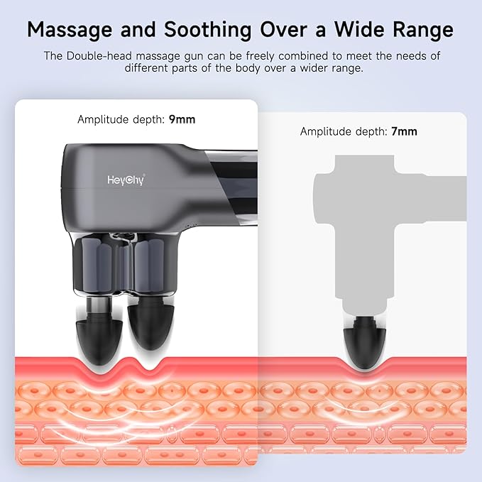 - 【Double-Head Design for Enhanced Muscle Relief】Experience double the massage power with our double-head mini massage gun, featuring two interchangeable heads for deep tissue targeting. Combine two of four specialized attachments (2×4 combinations) to address diverse muscle groups, delivering rapid pain relief and relaxation in half the time.
