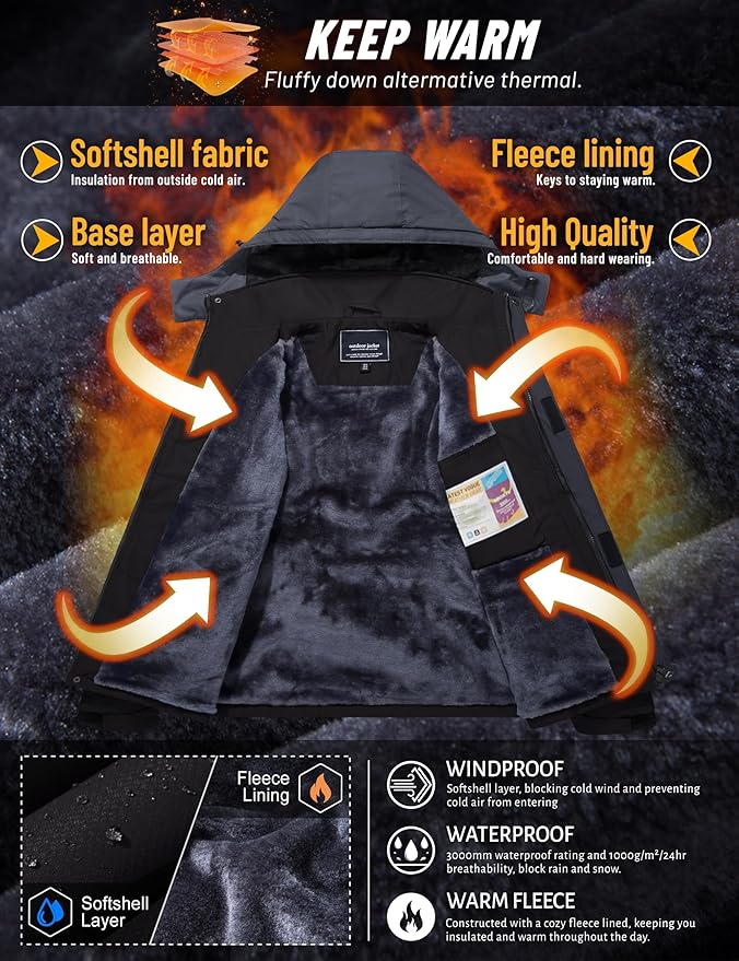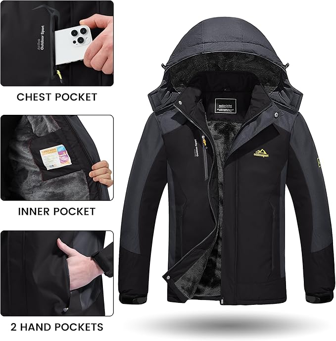 - ?�Water-Resistant?‘Mens winter coats made of Water-Resistant breathable fabric, also can fights bad rainy or misty weather, keep your body always dry and comfortable when you are skiing, snowboarding, hunting, hiking.