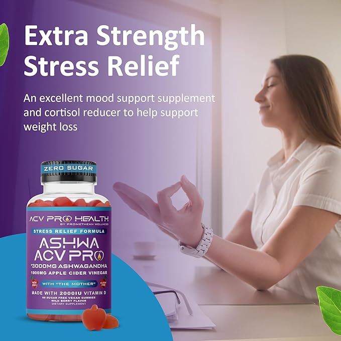 - Extra Strength Stress Relief - Did you know that chronic stress can cause an increased body mass? Research shows that high stress hormone cortisol causes excess mass to be retained in the body. Science proves that to help trimming and toning you need to manage cortisol with adequate sleep. Our extra strength ashwagandha root extract keto+ACV with Vitamin D sugar free gummies are an excellent mood support supplement and cortisol reducer to assist in your healthy diet all day and all night!
