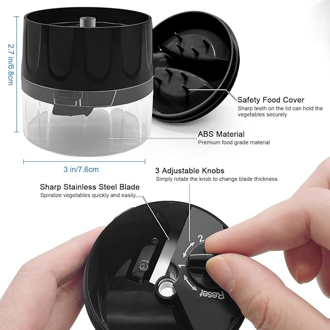 - [SAFE TO USE] - Our stainless steel blades are sharp, so the handheld spiralizer comes with a non-slip cover to keep you safe during use! This also minimises waste and maximise your yield of delicious zoodles.