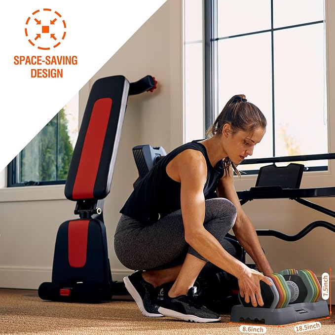- 🥇【Save Money & Space】It is great for your upper body workouts, which helps tone and sculpt your arms, shoulders and also strengthen your muscles. The dumbbell also come with a tray for secure storage of your units, without devoting too much floor space, and keep your home gym well organized.