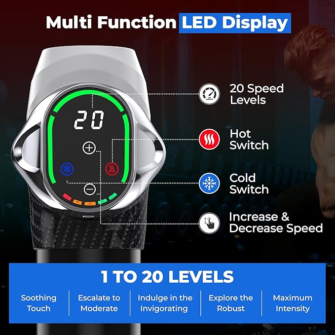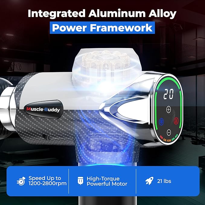 - Multiple Speeds and Attachments: Tailor your massage experience with 20 speed levels and 10 interchangeable heads. Whether you need an intense sports massage or a gentle relaxation massage, MuscleBuddy has got you covered. Delivers depth high penetration reaches and massages muscle tissue 10mm depth, relieving muscle fatigue and pain. Just increased or decrease the intensity of your massage at your desirable choice.