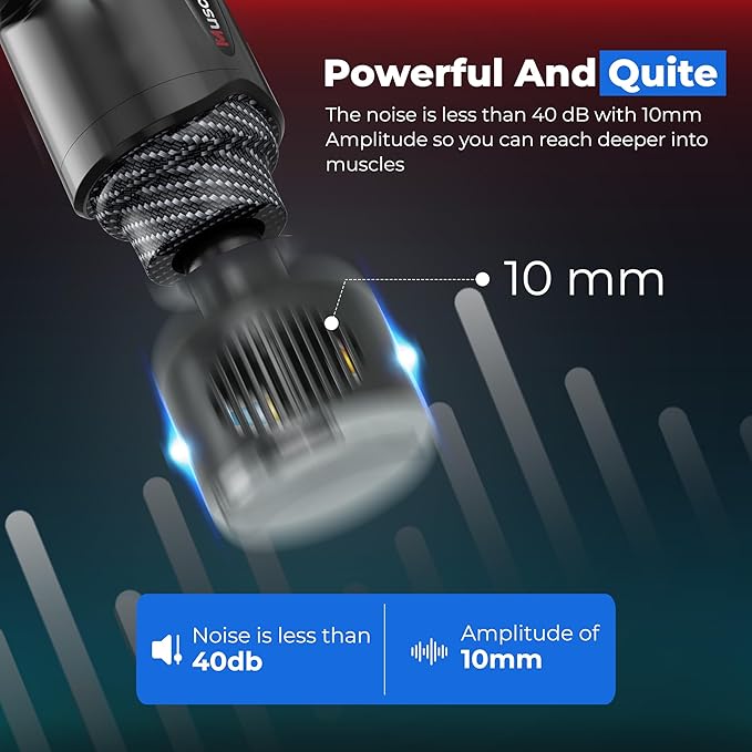 - Multiple Speeds and Attachments: Tailor your massage experience with 20 speed levels and 10 interchangeable heads. Whether you need an intense sports massage or a gentle relaxation massage, MuscleBuddy has got you covered. Delivers depth high penetration reaches and massages muscle tissue 10mm depth, relieving muscle fatigue and pain. Just increased or decrease the intensity of your massage at your desirable choice.