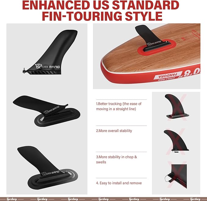 - 【Multipurpose Double-Blade Paddle and Enhanced US Fin】The double-blade paddle serves dual purposes, usable as a single-blade paddle for stand-up paddling or a double-blade for kayaking. The US touring paddleboard's fin with wider base for better tracking and more stability.