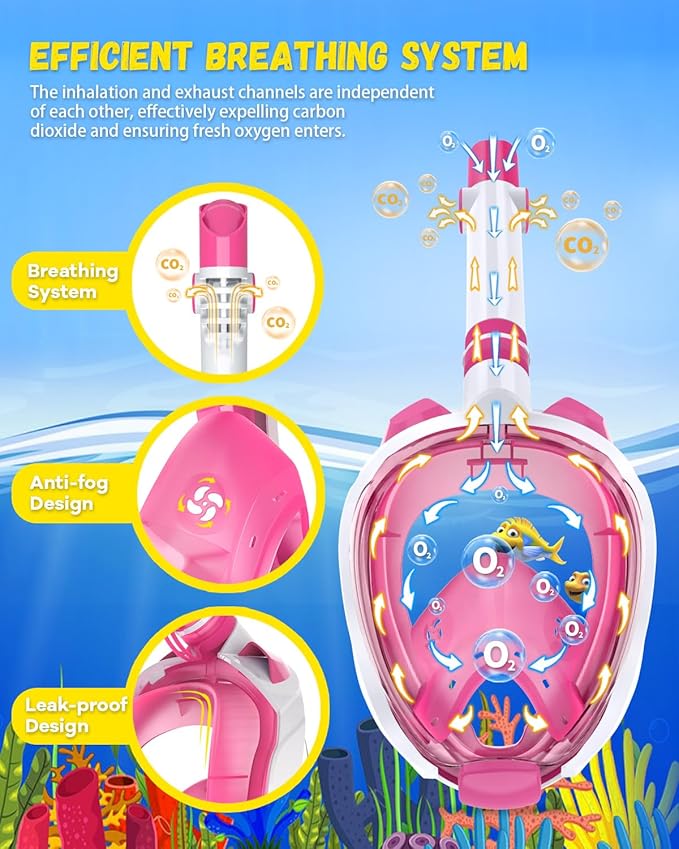 W WSTOO Kids Full Face Snorkel Masks,Suitable for Beginners Dry Top Snorkeling Gear,Can Your Mouth or Nose to Breathe,180 Degrees Panoramic View,Anti-Fog Anti-Leak,Summer Travel and Vacationing Gifts