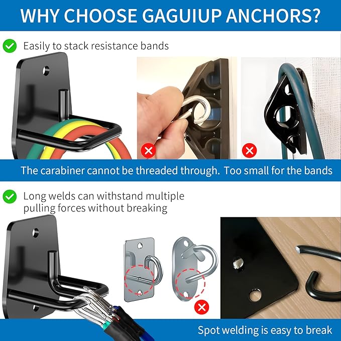 - 【CONVENIENT & PRACTICAL】The unique double-point connection and L-shaped opening design are perfectly suitable for stretching resistance bands of different diameters. Wall resistance bands anchor make it very easy to get these straps in or out quickly. It prevents the band from slipping during use and fits most resistance bands on the market. It is a trustworthy product for daily use.