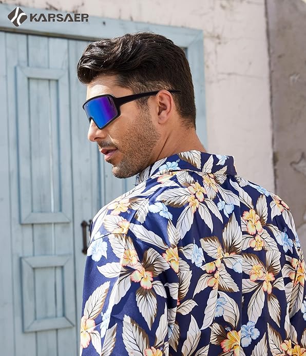 - 🔥「WRAPAROUND DESIGN」 The sunglasses have a wraparound design intended to fit the lens as close to the face as possible, covering your eye and providing a wider field of view, frame retention and impact protection.