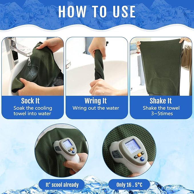 - Quick Cooling and Reusability: these bulk cooling towels are machine washable, the breathable mesh of cooling towels bulk allows you to easily activate the refrigerated towel by soaking, wringing and breaking; You can reuse these cooling towels for hot weather many times; The good cooling design can help to absorb sweat from your skin and keep you cool