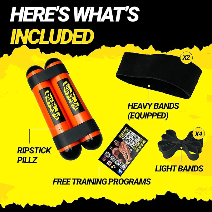 Premium RipStick Pillz, Workout Equipment for Joint Rehab, Shoulder Strength, Resistance Training, and Muscle Building, with 6 Adjustable Resistance Bands