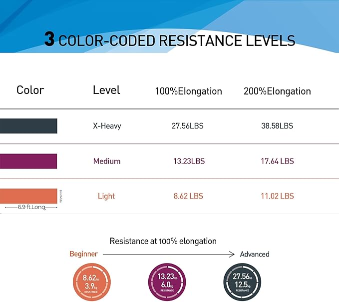 - 【Fun & Easy To Use】 The Bands are Perfect for Resistance Training and Rehabilitation, Which Provides Both Positive and Negative Force. You Can Take a Couple Wraps Around Your Hands for More Tension and a Secure Grip. or Just Tie a Knot, For Use as a Loop Band, and also You Can Double Them Up for Even More Resistance. The Bands are Vibrantly Color-Coded, Once You are Ready for a More Challenging workout, You can Move Up to The Next Color.