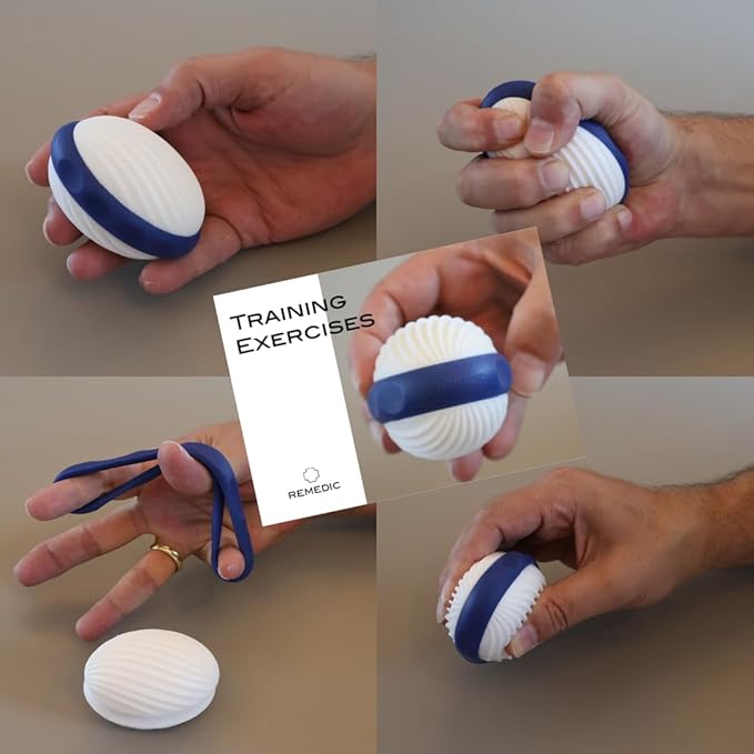 - Features of the Remedic Hand and Finger Training System: The Remedic Hand Trainer includes two interchangeable resistance rings that easily slide over the BPA-free, silicone ball. If one ring feels too hard or too soft, simply switch it out for the other. Designed to fit comfortably in the palm and fingers, it’s ergonomically friendly and compatible with various hand sizes, making it suitable for users of all ages. The ribbed surface enhances grip and dexterity, perfect for those with limited hand sensation or grip strength.