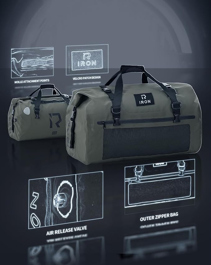 - 【Ample Capacity】This motorcycle tail bag comes in 30L, 50L, and 70L sizes, providing generous storage space. Internal pockets (30L fits a 15-inch tablet, while 50L and 70L fit a 27-inch tablet) and external mesh pockets offer extra storage options, helping you separate wet and dry items. Equipped with MOLLE attachment points for hanging keychains and water bottles, and an air valve to maximize capacity by releasing excess air.