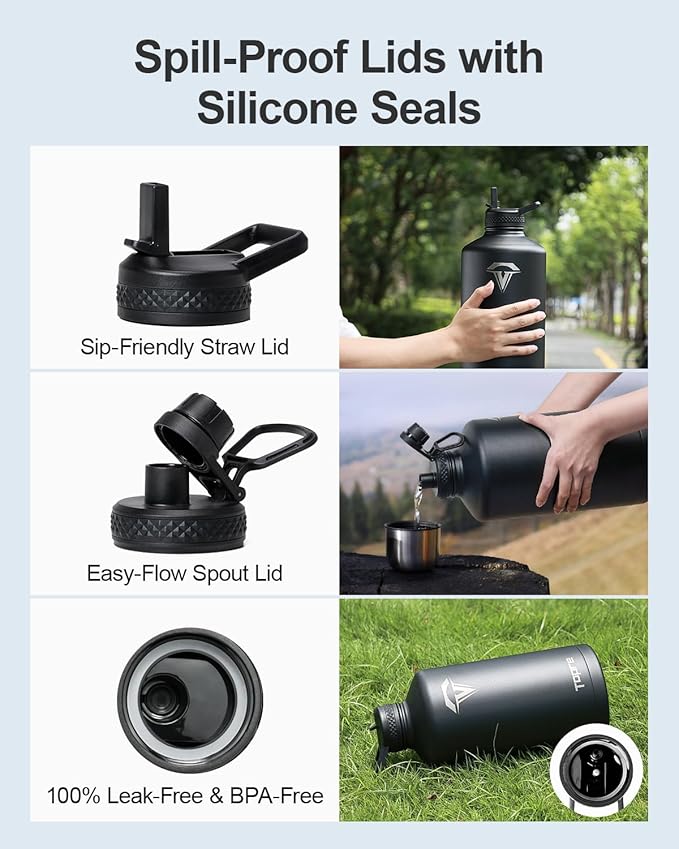 - No Leaks, No Worries: This stainless steel water bottle ncludes two leak-proof lids—a straw lid and a spout lid. Both are equipped with silicone rings to prevent any spills or leaks, and are completely BPA-free for your peace of mind.