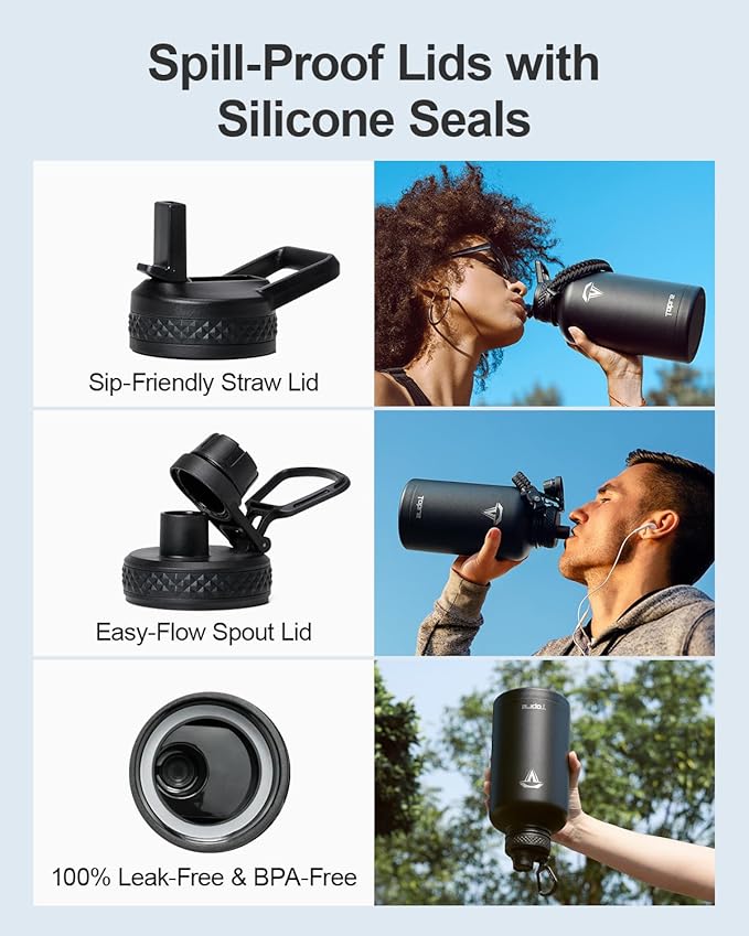 - No Leaks, No Worries: This stainless steel water bottle ncludes two leak-proof lids—a straw lid and a spout lid. Both are equipped with silicone rings to prevent any spills or leaks, and are completely BPA-free for your peace of mind.