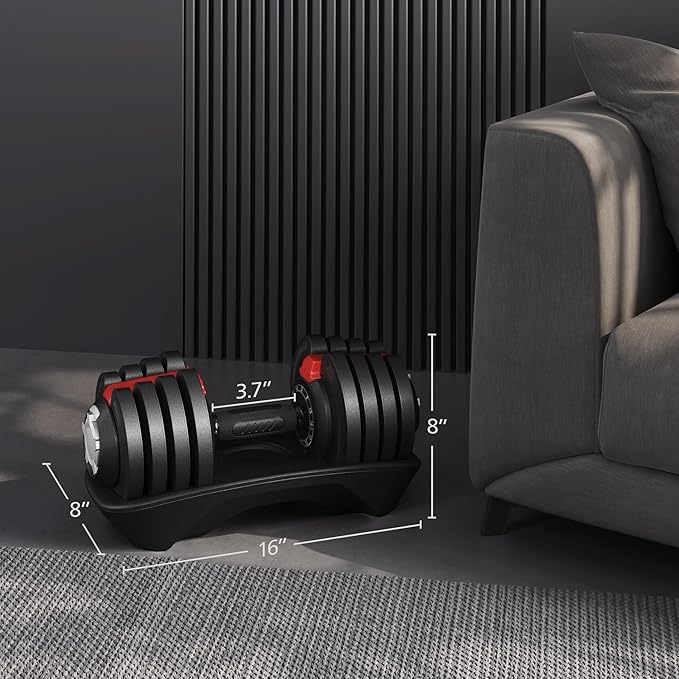 - 12-IN-1 ADJUSTABLE DUMBBELLS:This dumbbell set spans a wide weight range from 4 lb to 40 lb in diverse and smaller increments to facilitate gradual resistance, intensity, or volume adjustments.