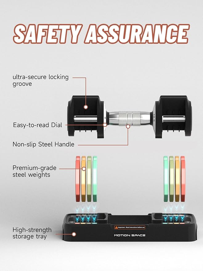 - 🥇【SAFETY DESIGN】With its innovative count weight plate design, it easily adjusts the weight by holding the handle and turning the pointer to the desired number. Our latest design includes 8 locking mechanisms, providing stability and ensuring safety during workouts.
