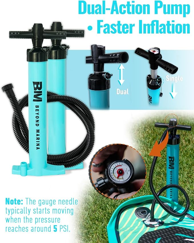 - 【Upgraded Double-Action Pump: Faster Inflation, Superior Quality】 Our paddleboard now includes a high-performance double-action pump from a top-tier suppliers., ensuring rapid inflation and deflation in just minutes. This upgraded pump delivers unmatched efficiency and ease of use, allowing you to get on the water faster. Built for durability and frequent use, it offers a seamless paddleboarding experience by combining speed, reliability, and convenience.