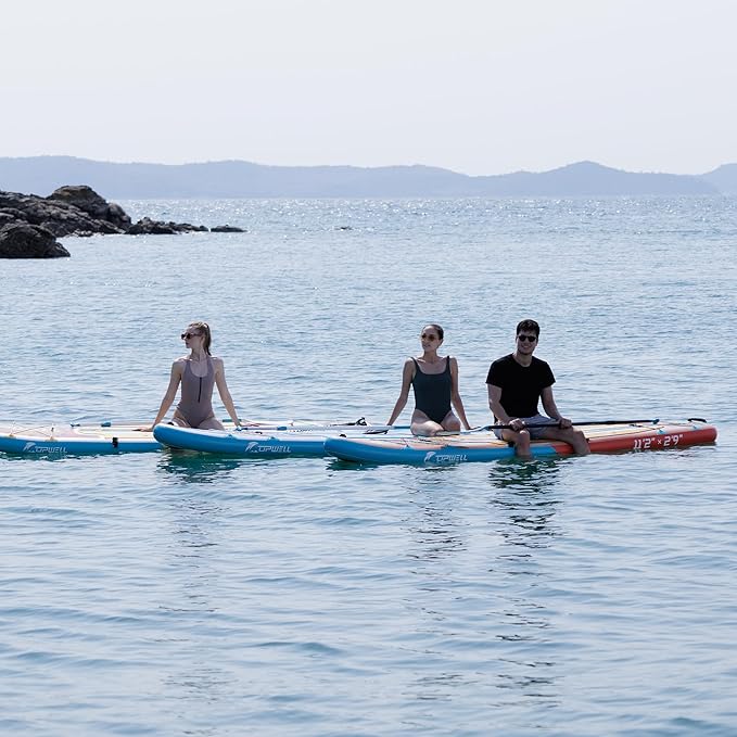 - 【PREMIUM MATERIALS】Our boards are crafted from quality military-grade PVC materials. Ultralight double wall PVC is 25% lighter than other same size products. Meanwhile, this reinforced lightweight fabric creates a firmness, anti-corrosion, wear-resistance sup board which can be used for years. Soft non-slip EVA deck pad makes you feel comfortable while ensuring your stability and safety when you stand for a long time. UPWELL paddle board is your choice for water sports.