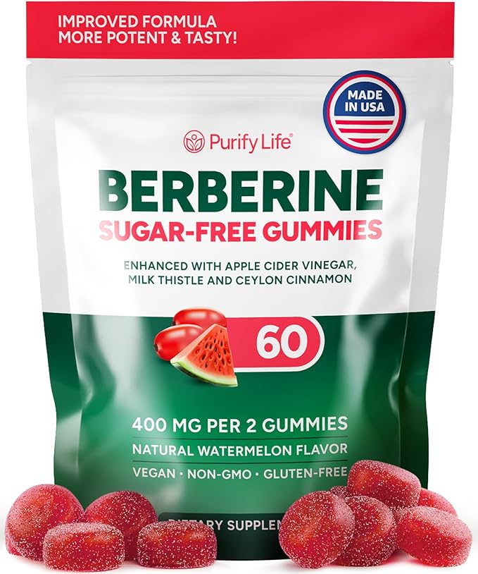 - [AMPK Activator for Sugar Metabolism]: Purify Life's berberine supplements can activate AMP-activated protein kinase (AMPK), a key enzyme involved in regulating cellular energy. Our berberine and cinnamon gummies help with I-sensitivity in the body when transporting sugar into cells, ultimately improving metabolism and gut health.