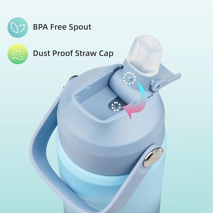 - Soft and durable silicone handle makes the bottle ideal for on-the-go use.Perfect water bottle for daily indoor use or camping, hiking, cycling, gym,travel and other outdoor activities