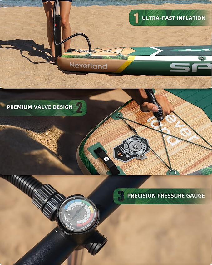 - 【Easy inflation & attractive design】SPORIT inflatable paddle board features convenient inflation and deflation capabilities. Equipped with a dual-action pump and high-end valve, it allows for effortless inflation and deflation. You can have it ready in just a few minutes, making it convenient and quick. Additionally, this paddle board has a stylish and unique design that adds charm and captures attention during your water adventures.