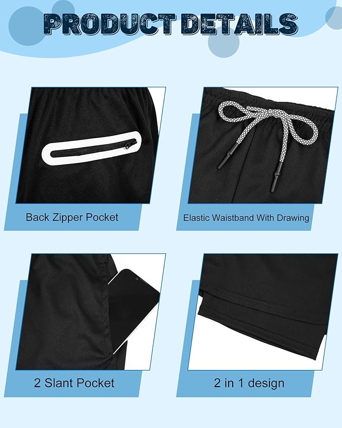 • 2 In 1 Feature: quick dry men gym shorts adopt double layer design for enhanced privacy and cool during your workouts, and the compression inner can reduce chafing, while the loose outer layer provides good mobility, catering to all your workout needs