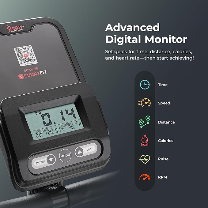 - 【PERSONALIZED TRAINING, ADVANCED DIGITAL MONITOR】Personalize your training by setting goals for time, distance, calories, and heart rate with the advanced digital monitor, while tracking your progress in real-time. Equipped with a built-in pulse sensor for precise workout metrics.