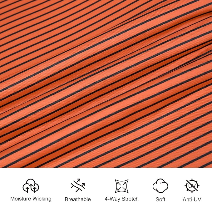- Performance Fabric: This mens golf shirts short sleeve made from Polyester Spandex Striped, Lightweight, comfortable, quick-dry, moisture-wicking, UPF 30+, breathable for added to its overall comfort.
