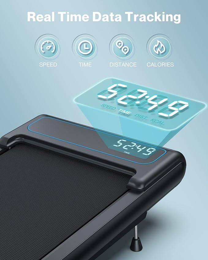 - LED Display & Remote Control: Stay informed about workout progress with LED display of the portable treadmill. It simultaneously shows to track speed, distance, time and calories in real time, it could easily adjust the speed by the super handy remote control to achieve different movements. Furthermore, its sleek design and durable construction make the treadmill a high-quality addition to your home office setup.