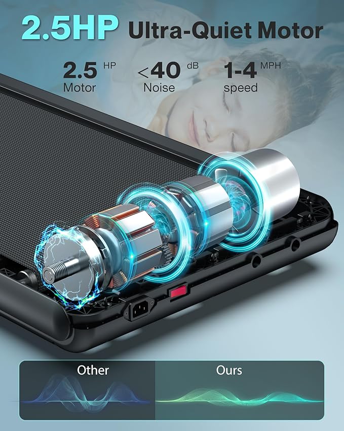 - 2.5HP Powerful Silent Motor: Equipped with a 2.5HP motor, the walking pad is robust and sturdy and able to provide a large carrying capacity of up to 265lbs. Plus, it supports the speed range from 1mph to 4mph so as to freely switch between walking and running to meet different exercise needs. The quiet under desk treadmill allows to exercise anytime, anywhere at home or in the office without any disruptive noise to disturb colleagues and neighbors.