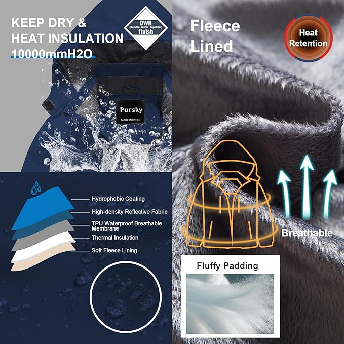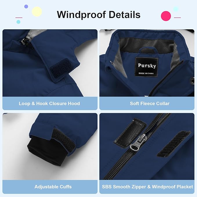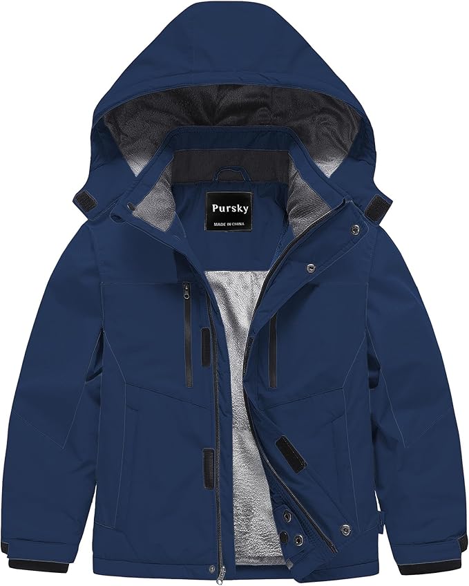 Pursky Boy's Waterproof Ski Jacket Kids Winter Snow Coats Fleece Raincoats Parka
