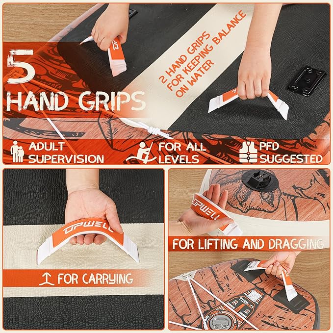 - 【PREMIUM MATERIALS】Our boards are made of quality military grade materials. Ultralight double wall PVC is 25% lighter than other same size products. Meanwhile, this reinforced lightweight fabric creates a firmness, anti-corrosion, wear-resistance sup board which can be used for years. Soft non-slip EVA deck pad makes you feel comfortable while ensuring your stability and safety when you stand for a long time. UPWELL paddle board is your choice for water sports.