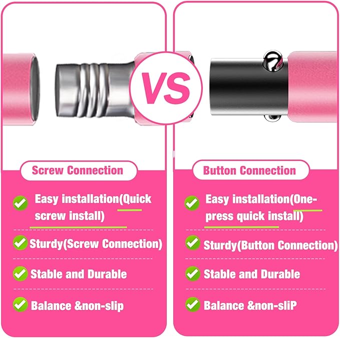- 【Upgraded Adjustment Pilates bar 】Our Pilates bar come with newly upgraded adjustment buckle and nylon rope with clear graduations. Just press the button easily, you can adjust the nylon rope to the desired length more quickly and accurately when training different movements. The adjustable ranges from 4.3 inches to 18 inches. Our Pilates bar kit with resistance bands are suitable for those who are between 5.2” - 5.8” height to practice.