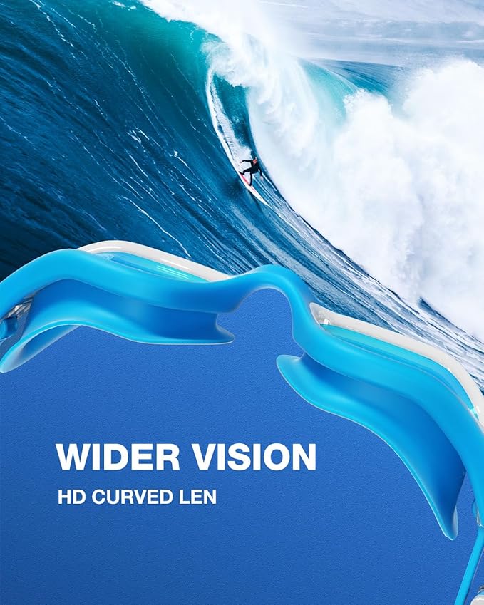 - Clear Panoramic View: Equipped with curved, high-definition lenses, the anti-fog goggles offer a wider peripheral vision. The 180° viewing angle ensures that you maintain visibility in crowded pools or open waters, keeping you safe at all times.
