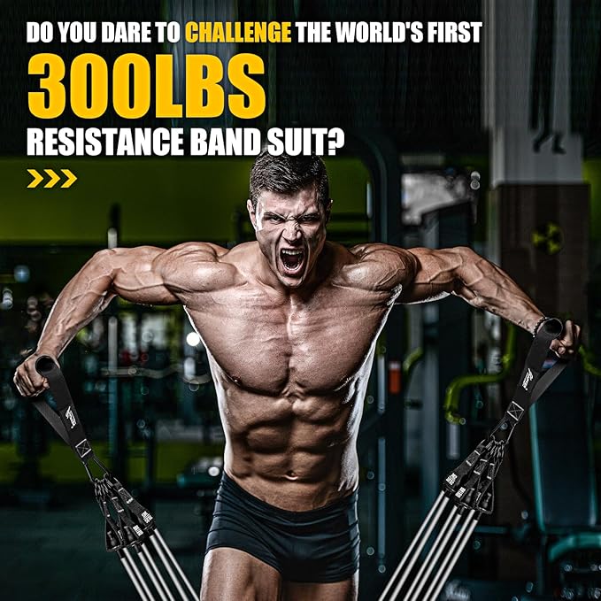 - 360lbs Heavy Resistance Bands --- In order to meet the strength needs of people who love fitness, we have developed the world's first 300lbs resistance band suit, A real man's resistance band suit, it's here, do you dare to challenge it? The fitness bands can reach up to 360 pounds with 6 different resistance levels(35lbs, 45lbs, 55lbs, 65lbs, 75lbs 85lbs), You can freely combine our resistance bands according to your strength!