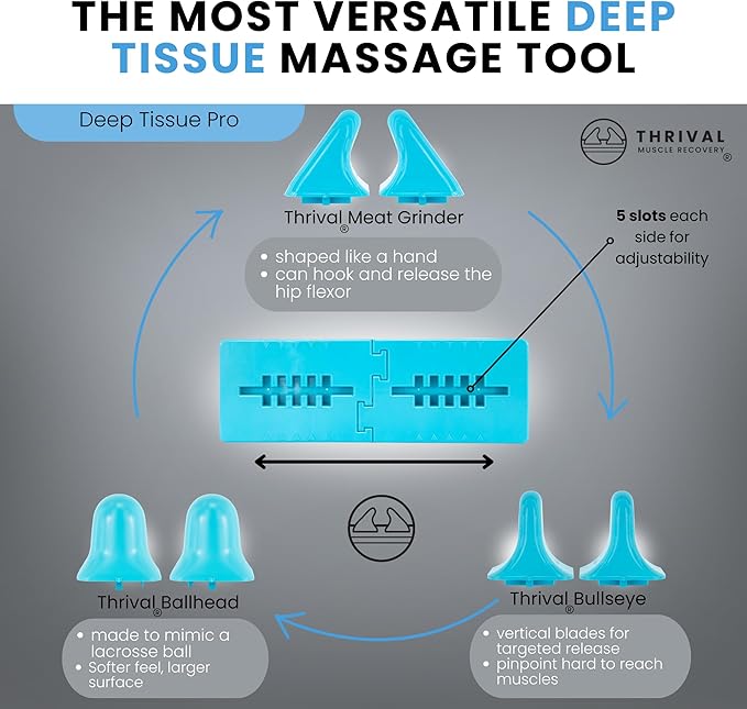 Thrival Deep Tissue Pro- Fully Adjustable Psoas, Back and Hip Flexor Muscle Release Tool for Deep Tissue, Trigger Point Massage (Blue) – Made in USA