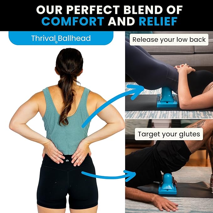 Thrival Ballhead - Fully Adjustable Psoas, Glute, Back and Deep Tissue Muscle Massage Release Tool (Blue) - Made in USA
