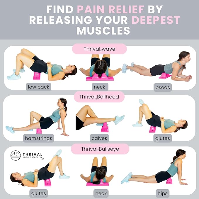 Thrival Wave - Fully Adjustable Psoas, Back and Hip Flexor Muscle Release Tool for Deep Tissue, Trigger Point Massage (Pink) – Made in USA