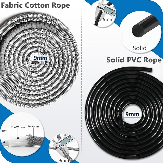 - 【2 Durable & Adjustable Ropes Combination】Skipping rope featuring a premium combination of a 9mm Thickened Cotton Rope(10ft) and a 9mm Solid PVC Rope(10ft), allowing you to easily switch between different training ropes to achieve various training goals. Suitable for a wider range of surfaces, it adds variety and excitement to your daily jump rope routine, remaining durable even after extended workouts