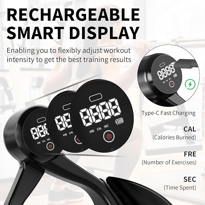 - 【Rechargeable Digital Display】: The smart digital display on the Inner thigh toner shows the number of exercises, calories burnt, and usage times, enabling you to track your workout data in real time, boosting your exercise efficiency. The Type-C fast charging technology takes 1-2 hours to charge fully.
