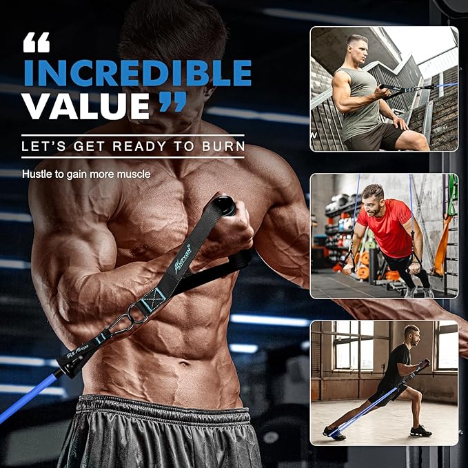 - 💪 【The Ultimate Home Workout Gear】 Our resistance bands for working out come in 5 levels—20lbs, 30lbs, 40lbs, 50lbs, and 60lbs—each with a unique color. Use them alone or combine them for up to 200lbs of resistance. Whether you’re new to fitness or a seasoned athlete, these exercise bands resistance are the ideal solution for home workouts.