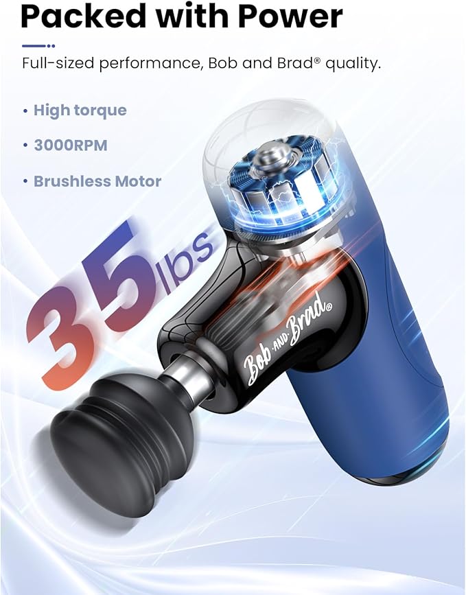 BOB AND BRAD Q2 Mini Massage Gun, Pocket-Sized Deep Tissue Massager, Portable Percussion Muscle Massager, Ultra Small & Quiet Muscle Massage Gun with Carry Case - Blue